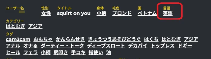 配信サイトによっては「話せる言語」が一覧で表示されるため、コミュニケーションに不安がある人でも安心して選べる仕組みになっています。
